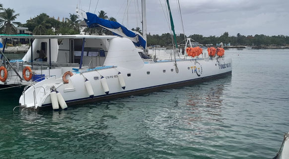 This giant sailing catamaran is perfect for very large groups, with a capacity of up to 120 guests. Ideal for private events, weddings, anniversaries, or corporate incentive groups. Featuring two restrooms, a bar, a dance floor, and front nets for lounging in the sun, it offers a unique experience for sailing to Saona, Catalina, or the Natural Pool in ultimate style.